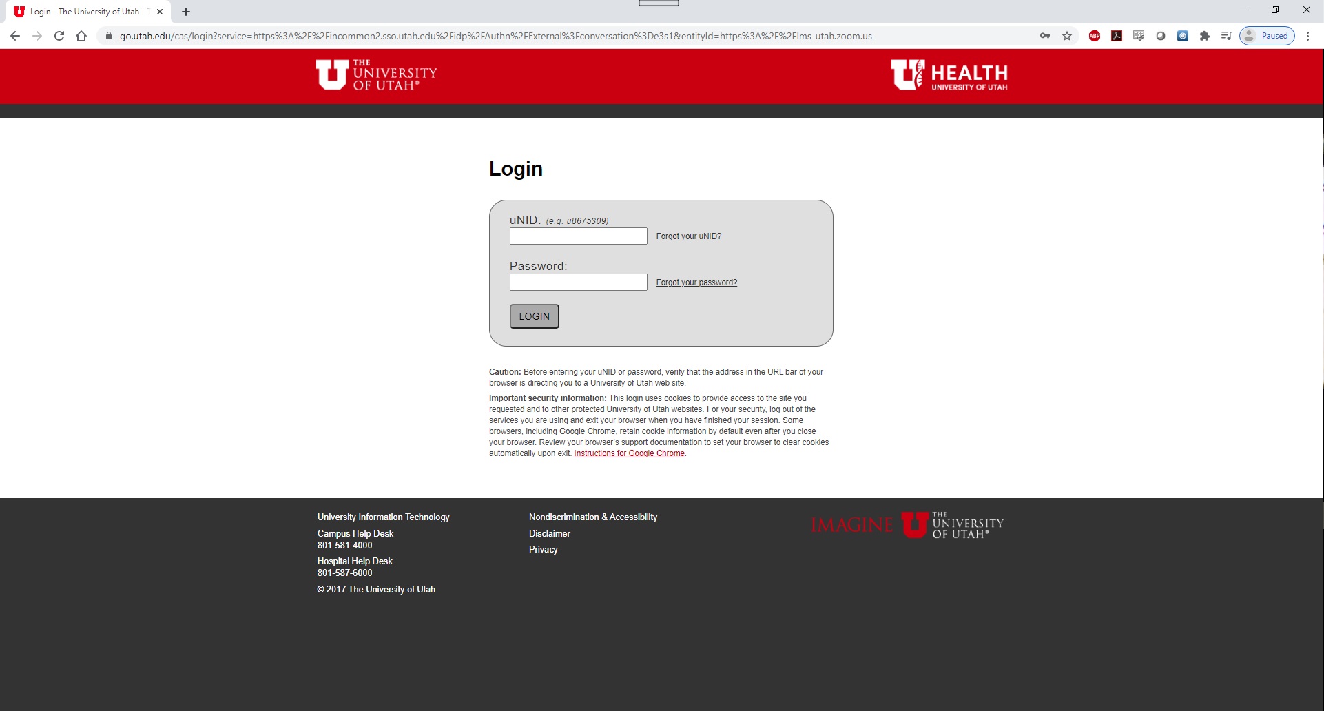Once you have an Utah Health Zoom Account, please be aware that you may be logged out of you account after a period of time and will need to Log In.