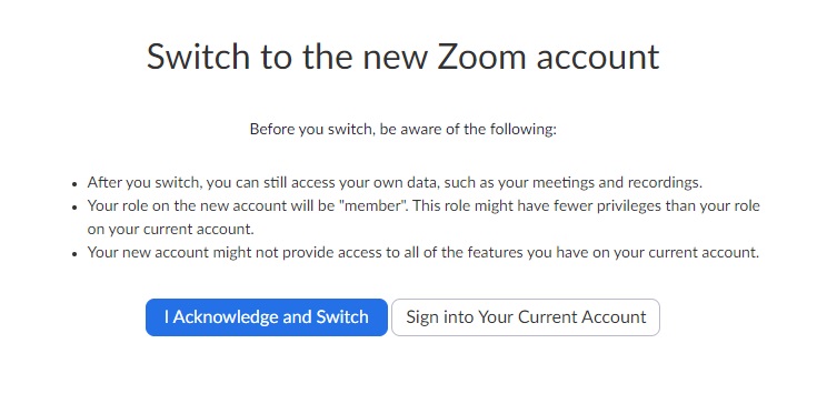 - It will ask you if you want to Switch to the New Account. Choose this option.