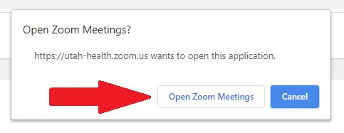 - A browser will open up along with this dialog box. Choose Open Zoom Meetings to Log In.