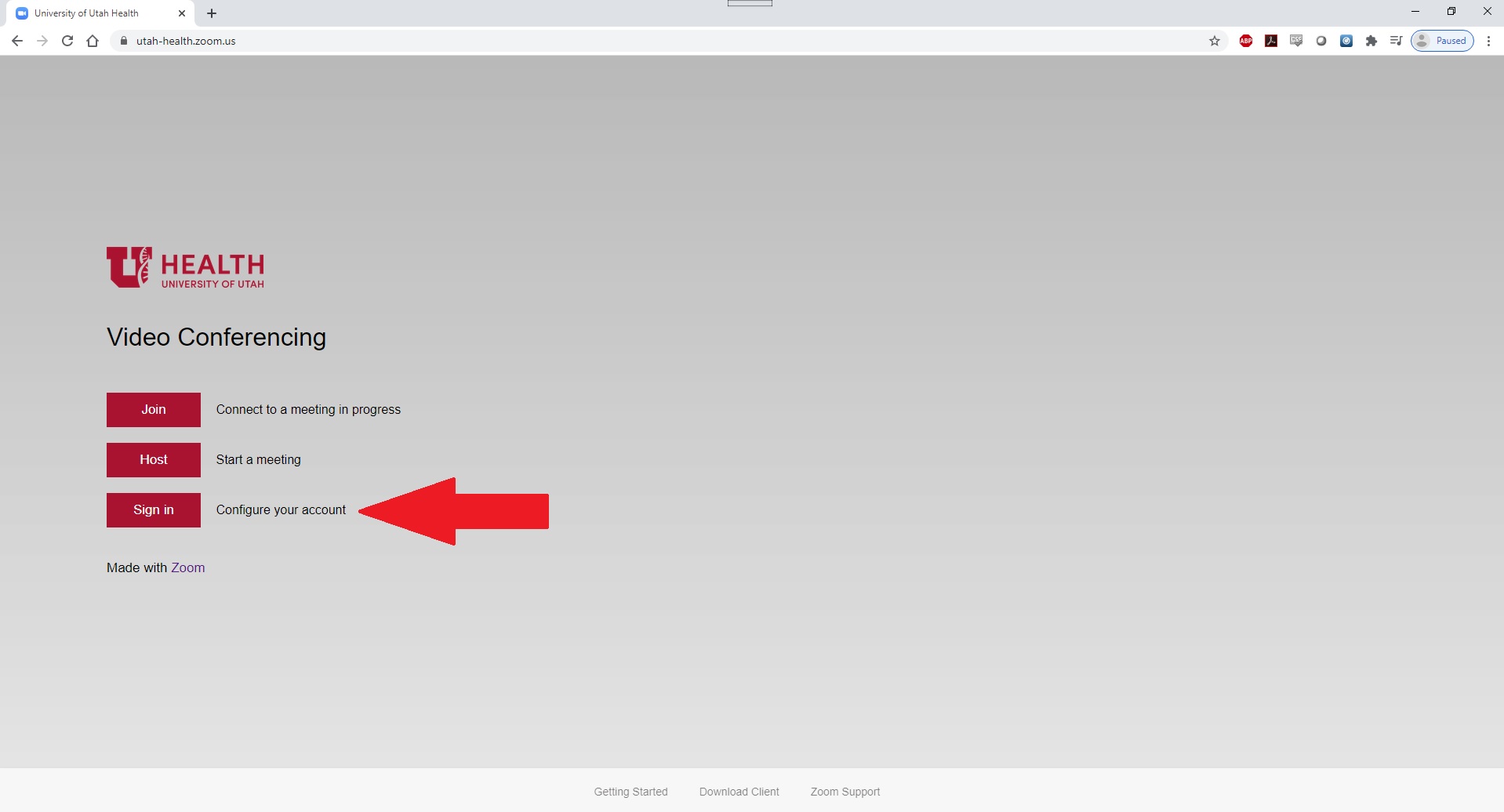 - Go to https://utah-health.zoom.us and choose the Sign In option