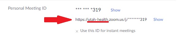 - On your Profile page, check the URL under Personal Meeting ID. If the URL shows utah-health in it, it means you have an Utah Health account.
